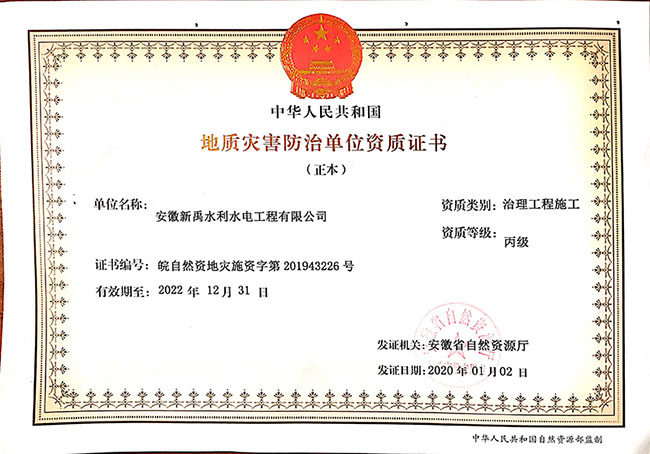 地质灾害防治单位资质证书